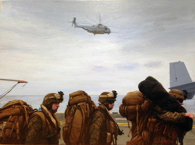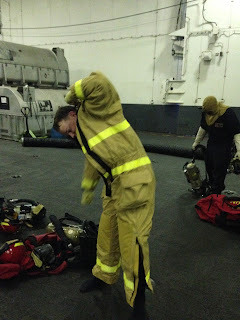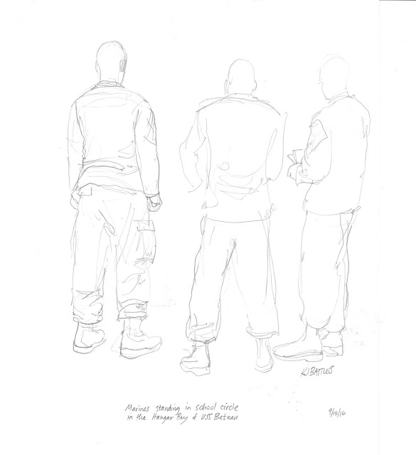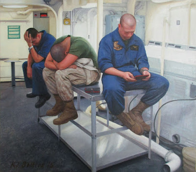 We were told to follow the crewman out of the plane, and we did so. We were led to the edge of the flight deck, down some stairs and into a hatch in the carrier itself, where we were taken to the Air Travel Office and we were checked in. I was met there soon after arriving by LT Tabitha Klingensmith, one of the Public Affairs Officers on board the Truman. She was to be my sponsor while there-- and not only was also a combination of supervisor, guide, event planner, organizer, and agent throughout my stay-- and proved to be invaluable in the successful completion of my art mission. I must say, without her skills in logistics and networking, I would never have been able to fulfill my mission as much as did, which will be evident in future posts on the experience.